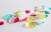2017年からスタートした「お砂糖の魔法にかけられた女の子」という、架空の絵本を具現化したお菓子シリーズ。「あまいおはじき 18個入 864円(税込)」は、日本の伝統的な飴「有平糖(ありへいとう)」で作られ、可愛らしい造形と優しい甘さが特徴。絵本の世界感を表現したパッケージに加え、おはじきの遊び方が添えられるなど、細部のディティールまで架空の世界感を表現している遊べるお菓子。