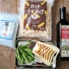 【1】ゆでたけのこは薄切り、スナックえんどうはスジとヘタを取り、油揚げは細切り、にんにくはみじん切り、鷹の爪は種を取り出しておく。